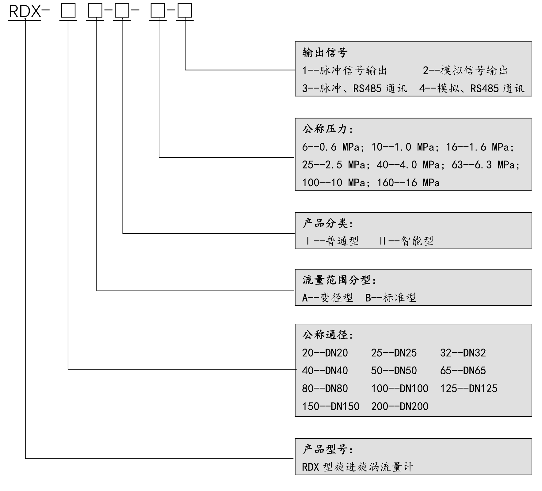 用戶訂購本產品時應根據管道公稱通徑、流量范圍、介質最大壓力及使用要求選擇合適的規格和修正儀配置。并按照下列格式詳細正確填寫。